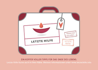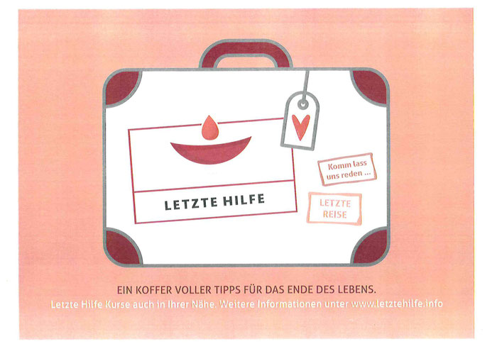 Im Kurs sprechen wir über die Normalität des Sterbens als Teil des Lebens. Natürlich werden auch Patientenverfügung und Vorsorgevollmacht angesprochen. Wir thematisieren mögliche Beschwerden, die Teil des Sterbeprozesses sind und wie wir bei der Linderung helfen können.