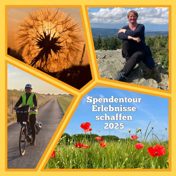 Mit Rad und Wanderschuh habe ich auf der Spendentour „Erlebnisse schaffen 3.0“ zwischen dem 1.6. und 1.9.2025 viele schöne Begegnungen und Erlebnisse gehabt und insgesamt 3240 km wandernd und mit dem Fahrrad zurückgelegt.